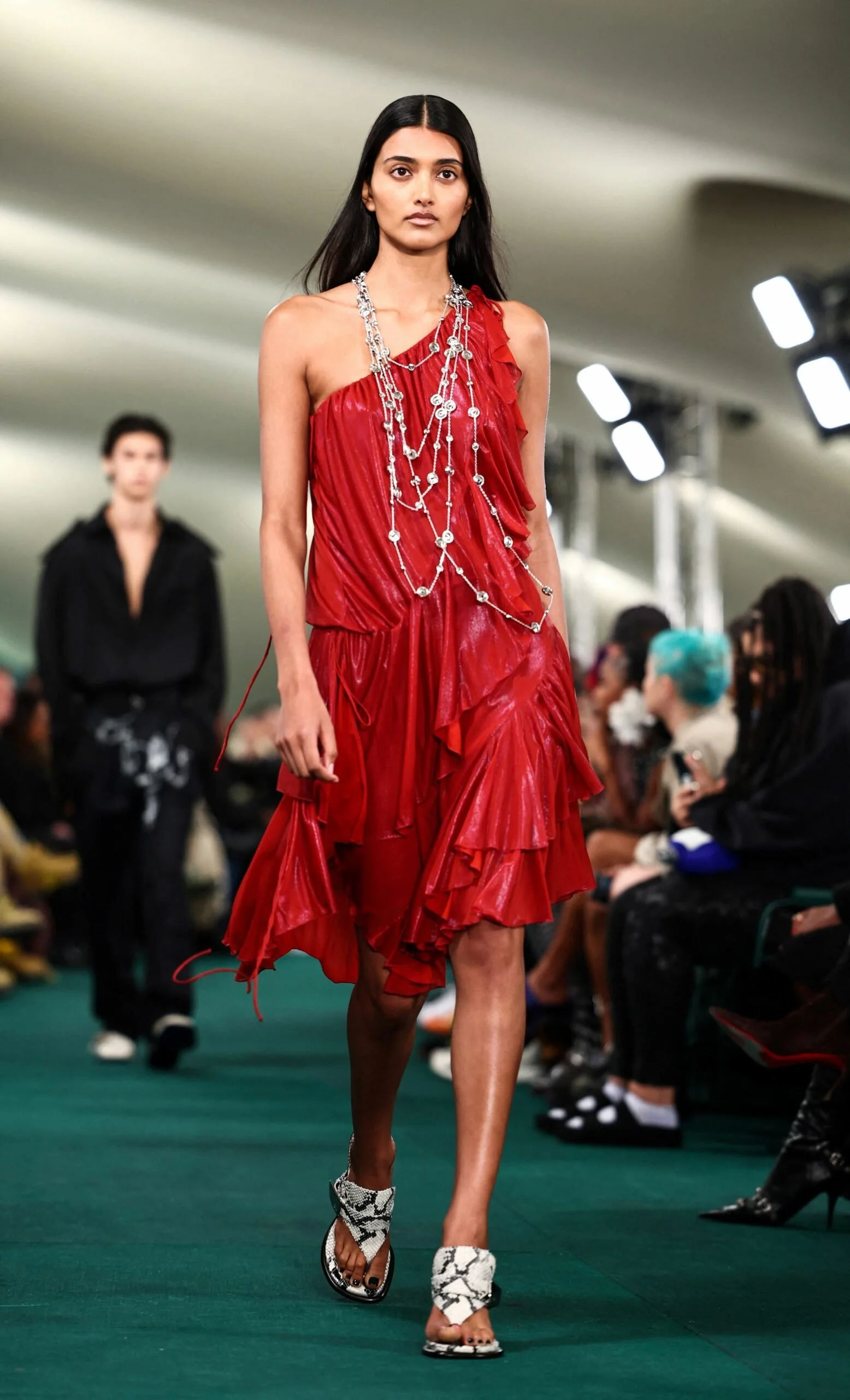 Designers like Nensi Dojaka, Coperni, and Simone Rocha have been at the forefront of the sheer revival, showcasing intricate layering, strategic opacity, and dynamic silhouettes. The goal isn’t to bare all—it’s to create intrigue.