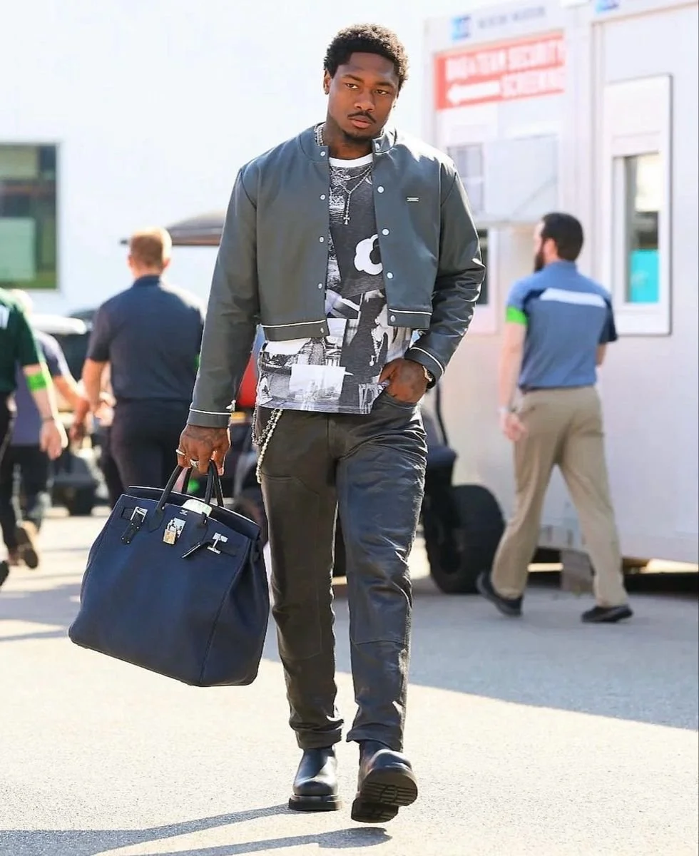 Stefon Diggs has one of the most dynamic personalities in the league, and that’s mirrored in his bold, fashion-forward style. Known for his high energy and confidence both on and off the field, Diggs isn’t afraid to take risks with his wardrobe. His style is a fusion of classic tailoring and modern streetwear, often incorporating statement pieces like fitted blazers or trendy outerwear. He’s also not shy about mixing patterns or adding pops of color to his looks, which shows his creativity and flair for pushing boundaries. Diggs has a great eye for detail, always accessorizing with watches, chains, and sunglasses that complement his outfits, giving him a look that’s both polished and energetic. His style says, “I’m stylish, I’m confident, and I’m not afraid to stand out.”